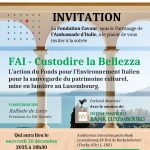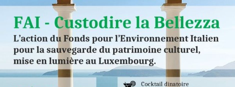 La Fondation Cavour, sous le Patronage de l’Ambassade d’Italie, a le plaisir de vous inviter à la soirée FAI – Custodire la Bellezza. L’action du Fonds pour l’Environnement Italien pour la sauvegarde du patrimoine culturel, mise en lumière au Luxembourg. qui aura lieu le 10 décembre 2025 à 18h30 Auditorium Intesa Sanpaolo Bank Luxembourg 28 Boulevard de Kockelscheuer (Cloche d’Or) L-1821 Cocktail dînatoire Inte